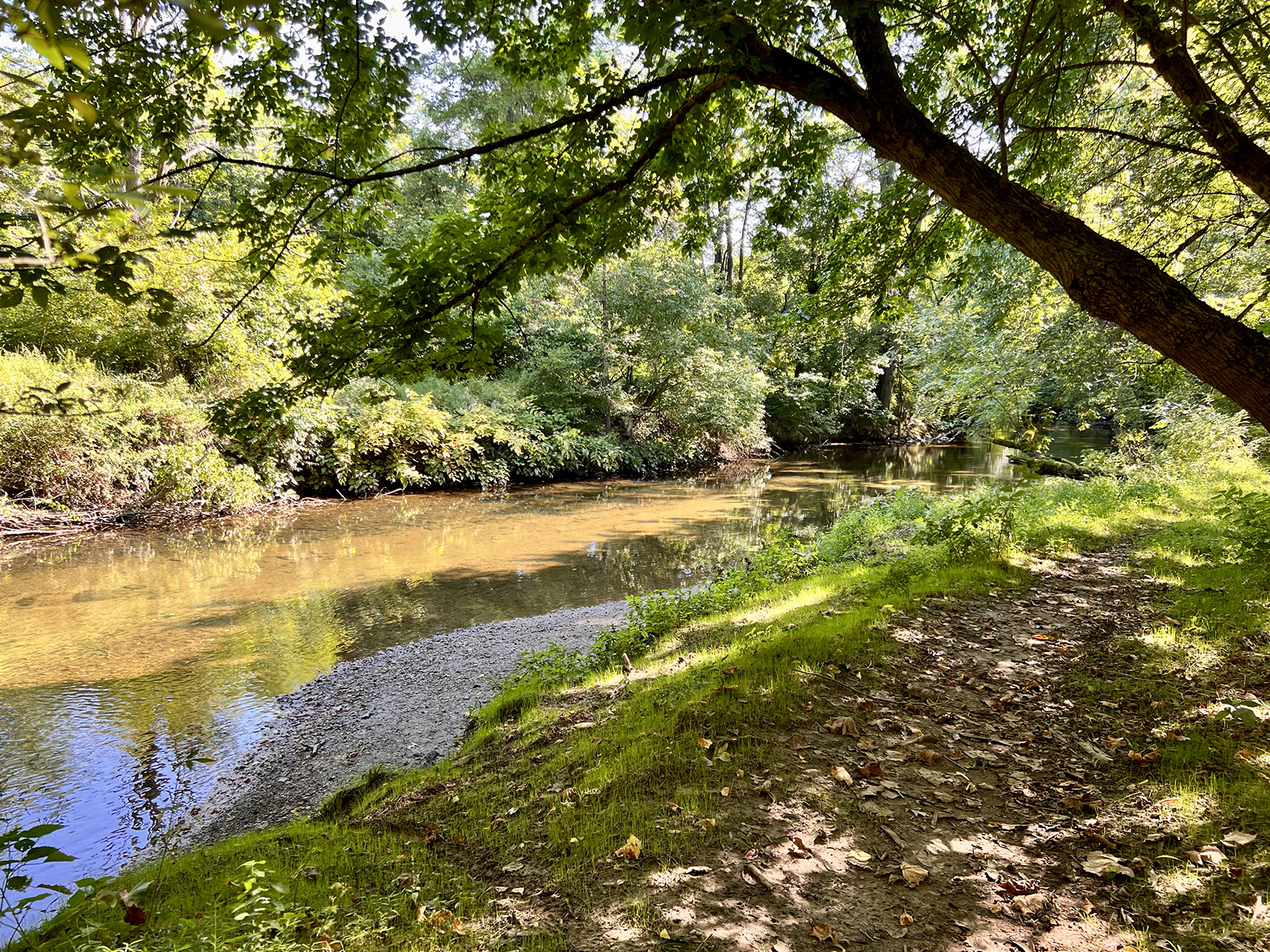 The hike is approximately 3.2 miles long. We’ll walk on dirt trails along the creek and in the woods. Sections of the trails in Bonner Park have hills, rocks and the occasional mountain bike jump (fallen log) to step over. Children and leashed dogs are welcome.